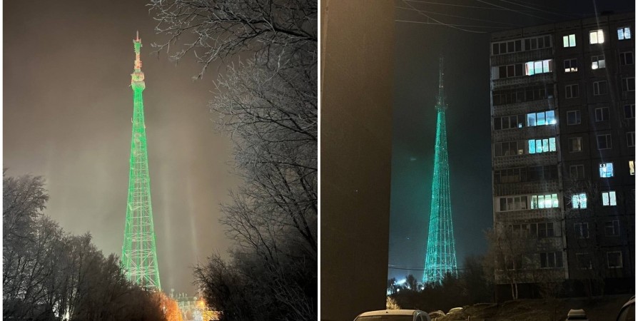 Мурманская телебашня присоединилась к всероссийскому флешмобу «Сохраним лес» и в поддержку акции включила зеленую подсветку.
