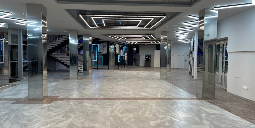 В Ледовом дворце Мурманска завершают ремонт фойе. Ход работ проверила вице-губернатор Елена Дягилева.