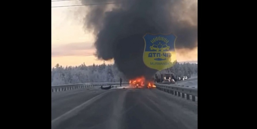 Под Мурманском два человека погибли в ДТП, когда на трассе «Кола» столкнулись две легковушки, а одно из авто после сгорело.