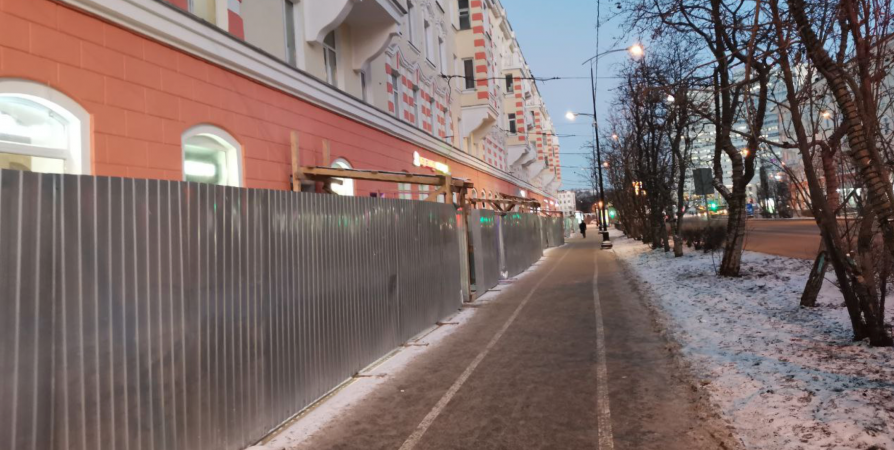 В центре Мурманска заборы возле домов на проспекте Ленина, где проходил капремонт фасадов, пообещали разобрать после ремонта крыш и балконов.