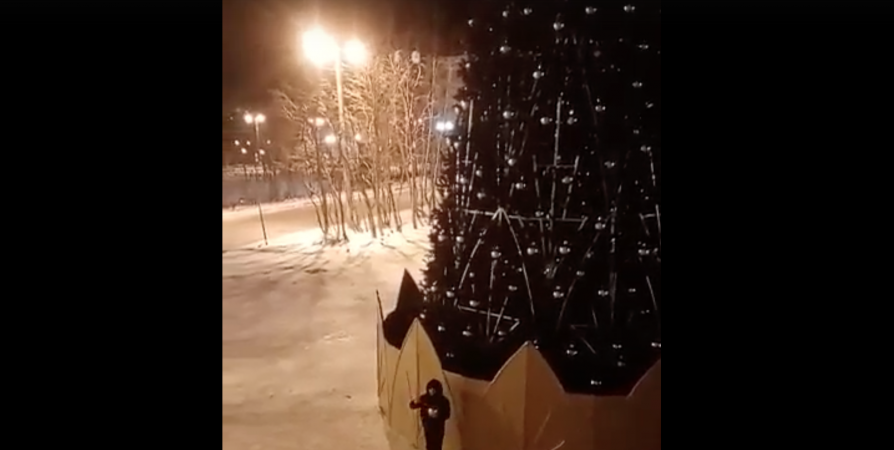 В Кировске на камеру запечатлели, как ребенок срывает игрушки с главной елки города.