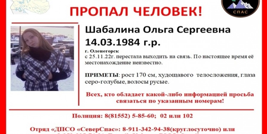 Ранее Nord-News сообщало о пропавшей 37-летней мурманчанке.