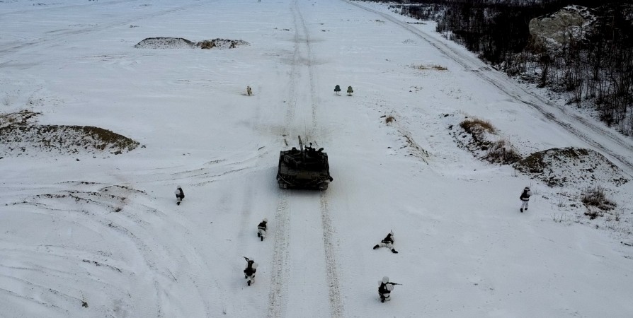 - Мотострелки совместно с танковыми подразделениями отрабатывают тактику ведения боя в наступлении в составе отдельных штурмовых групп под прикрытием танков. Занятия проходят в суровых зимних условиях Заполярья, с применением зимних маскхалатов, - сообщили в пресс-службе Северного флота.