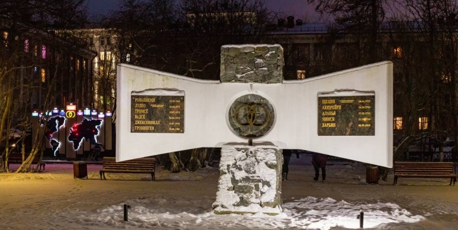 Этот памятник мурманчане давно и прочно назвали «чебурашкой» и, пожалуй, мало кто сходу скажет, зачем на нем кольца и что дают городу побратимские связи. Однако, в этом году на неизбалованном вниманием объекте таблички меняли несколько раз и скоро поменяют еще раз.