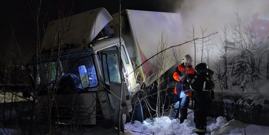 В Апатитах в районе улицы Промышленная водитель грузовика, двигаясь по кольцевому перекрестку, не справился с управлением и вылетел в кювет.