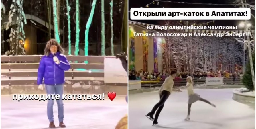 Арт-каток «Сияние» в Апатитах открыли известный телеведущий и уроженец города Андрей Малахов и прославленные российские фигуристы Татьяна Волосожар и Александр Энберт, которые впервые выступили перед местными жителями и гостями мероприятия в паре и продемонстрировали новый номер.