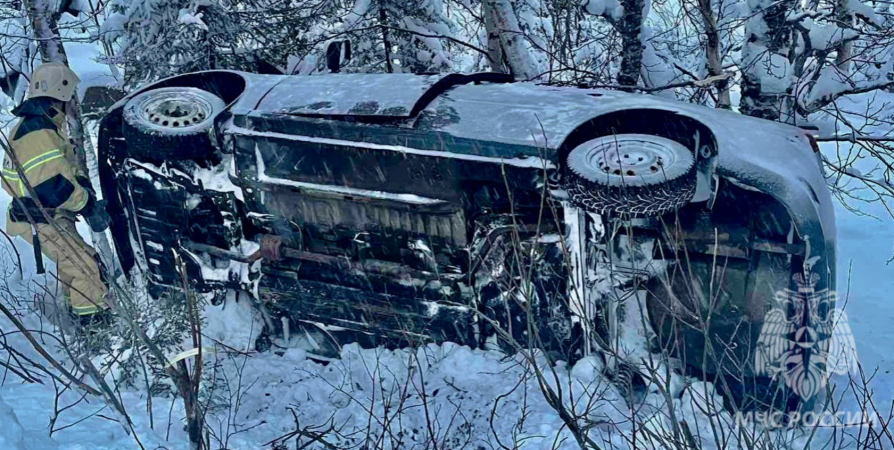 Сегодня около 12:30 в Риж-Губе на 8 км легковушка улетела в кювет и перевернулась.
