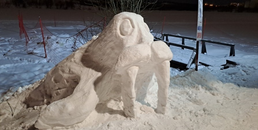 Мурманчане в соцсетях придумывают имя снежной скульптуре, которая появилась у домика «моржей» на Семеновском озере.