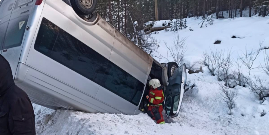 На 1192 км трассы «Кола» под Полярными Зорями перевернулся фургон Ford Transit. Как сообщили в Управлении по ГОЧС и ПБ Мурманской области, автомобиль съехал на обочину и опрокинулся на крышу.