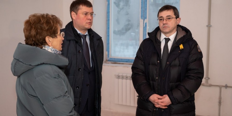 Глава города Мурманска Игорь Морарь вместе с главой администрации Юрием Сердечкиным проверили ход ремонтных работ в школе №1 на улице Буркова.