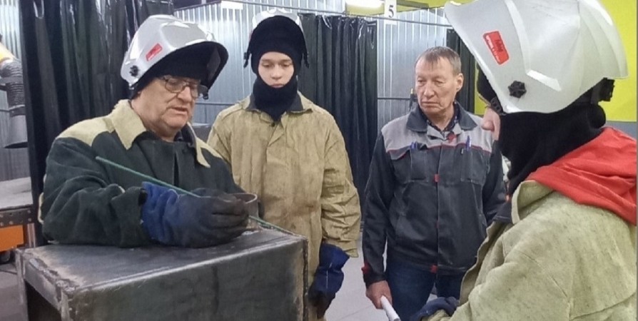 Студенты Оленегорского горнопромышленного колледжа изготавливают походные печки для участников СВО. Руководят процессом преподаватель Николай Пучков и заведующий практикой Александр Боботин.