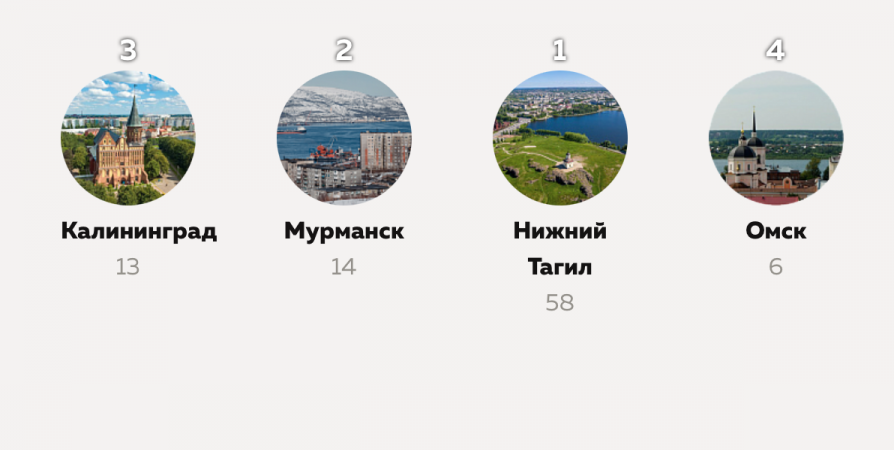 К настоящему моменту лидирует Нижний Тагил, далее идет Мурманск, после Калининград и Омск. Финал конкурса состоится 2 февраля. Голосование проходит на сайте Тотального диктанта.
