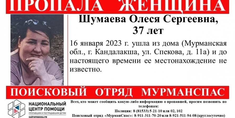 В Кандалакше пропала 37-летняя Олеся Шумаева, сообщили волонтеры.