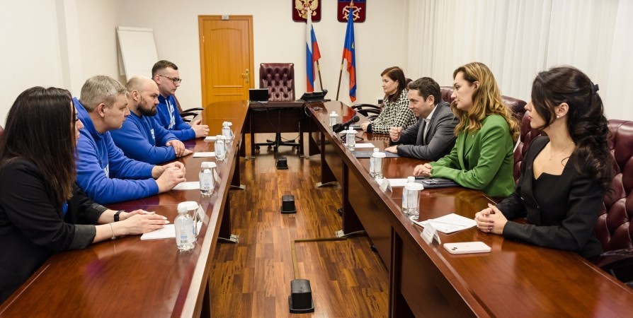 Глава Заполярья Андрей Чибис встретился с председателем Всероссийской Общественной Организации «Молодая Гвардия Единой России» Антоном Демидовым и федеральным координатором движения по Северо-Западному округу, руководителем регионального отделения «Молодой Гвардии Единой России» в городе Санкт-Петербург Александром Маликовым.