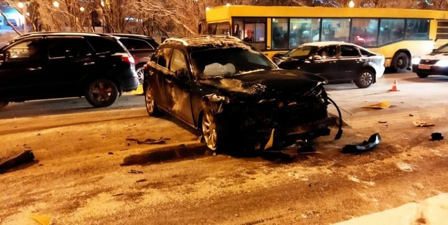 В Мурманске на пересечении проспекта Кольского и улицы Шевченко столкнулись два легковых автомобиля Lada Granta и Infiniti FX. Авария произошла в 7:50.
