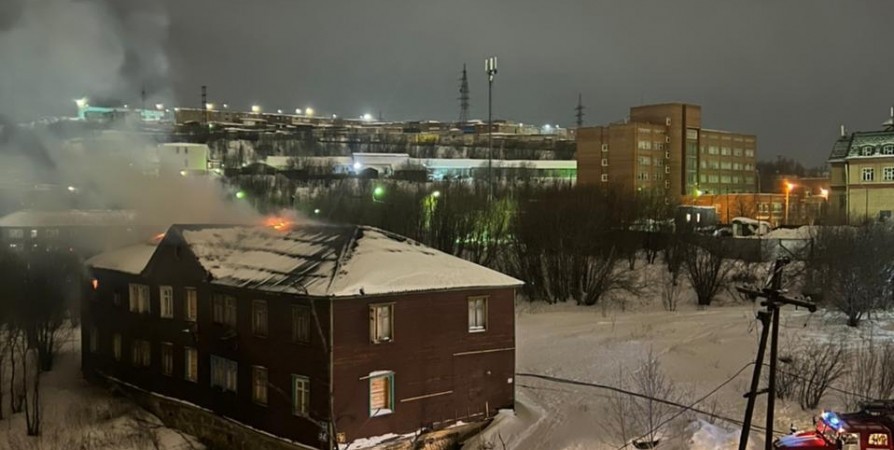 В нежилом доме Мурманска на Халтурина, 32 произошел пожар. Информация о возгорании поступила в 3:46.