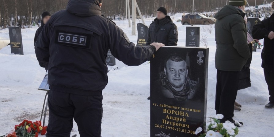 На «Аллее памяти» городского кладбища в Мурмашах состоялся митинг памяти бойцов СОБР «Росомаха» Росгвардии, погибших при исполнении служебного долга.