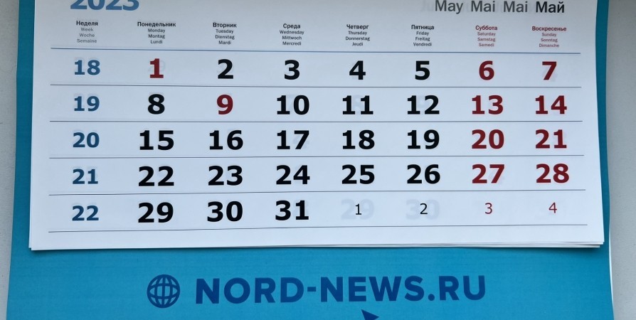 Ранее Nord-News сообщало, что все россияне, и северяне в частности, будут отдыхать с 29 апреля по 1 мая, с 6 по 9 мая - традиционно в связи с празднованием Первомая и Дня Победы.