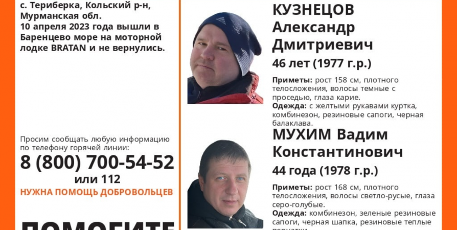 - 10 апреля 2023 года вышли в Баренцево море на моторной лодке BRATAN и не вернулись, - уточнили добровольцы.