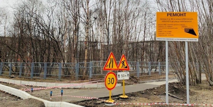 Там отметили, что в Ленинском округе Мурманска начались работы на дороге у детской поликлиники № 5.