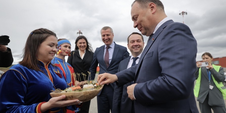 Сегодня в Мурманскую область с рабочим визитом прибыла делегация Белоруссии во главе с премьер-министром Республики Романом Головченко. Гостей встречали стилизованными саамскими костюмами и рыбной нарезкой, рассказали Nord-News в региональном Министерстве информационной политики.