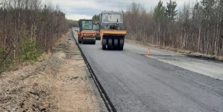 Ранее здесь были расчищены полосы отвода и кюветов, проведены работы по устройству регенерированного нижнего слоя, укладке верхнего слоя асфальта на участках дороги, нанесена дорожная разметка.