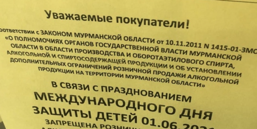 1 июня, в День защиты детей, в Мурманске и области не будут продавать алкоголь в соответствии с региональным законом.