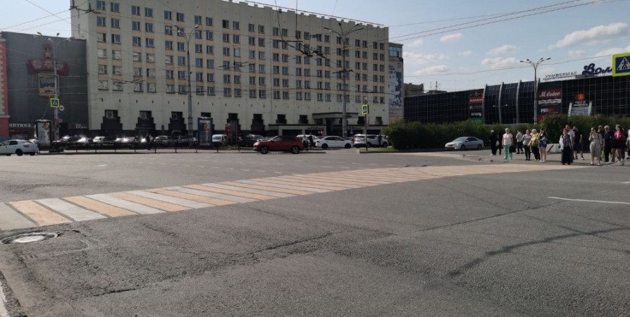 Так, в центре города - на проспекте Ленина - дорожную разметку нанесли толстослойным холодным пластиком.