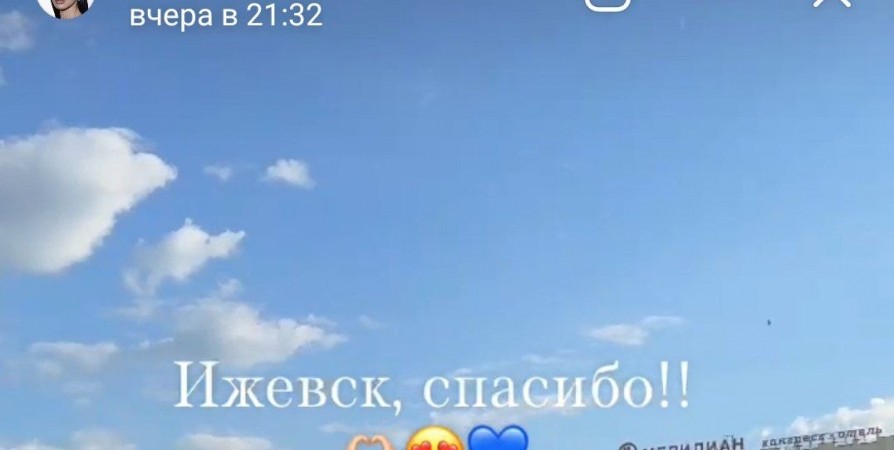 Ольга Серябкина выложила в VK сторис, на котором видно, как она выступает на главной сцене на Пяти Углах в Мурманске. На видео оператор переводит камеру с певицы на аудиторию, на кадрах видны мурманские «сталинки» и мурманский отель «Меридиан». Но вместо фразы «Мурманск, спасибо» в текстовом сопровождении видео поблагодарили жителей Ижевска. К слову, историй ранее Ольга Серябкина выложила кадры с момента, как она сходит с самолета и приветствует Ижевск.