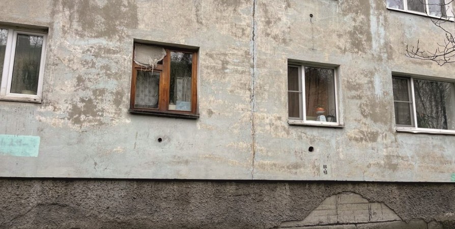 В Мурманске на фасаде жилого дома №3 на улице Капитана Тарана разрастается трещина. Она появилась в результате перепланировки помещения на цокольном этаже, которую собственник начал несколько лет назад.