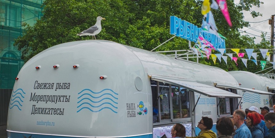 На улице Воровского расположились фудтраки, с прилавков которых продают свежую, копченую, замороженную рыбу, пресервы и морские деликатесы. Рядом с ними работают автолавки, где можно приобрести готовые арктические блюда и напитки.