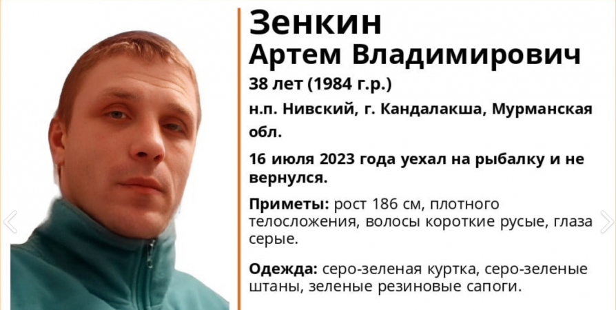 38-летний житель Кандалакши Артем Зенкин 16 июля уехал на рыбалку и до сих пор не вернулся, сообщили волонтеры Поисковый отряд «ЛизаАлерт» Мурманской области.