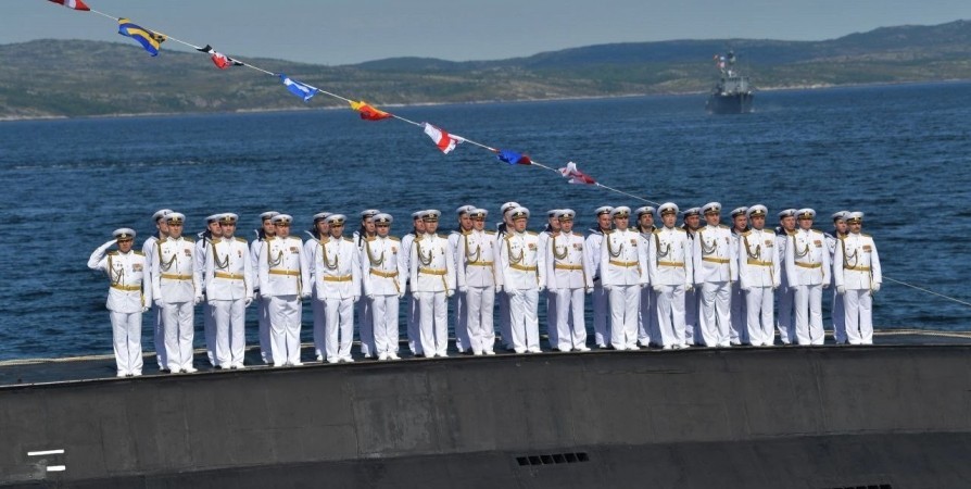 Сегодня на североморском рейде Кольского залива выстроились боевые корабли, подводные лодки, по Приморской площади флотской столицы промаршировали парадные расчеты - моряки-североморцы отмечают День Военно-Морского Флота.