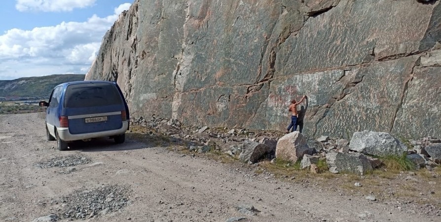 Турист, приехавший на побережье Баренцева моря на автомобиле с карельскими номерами, написал на скале краской из баллончика фразу «Мы Миненковы».