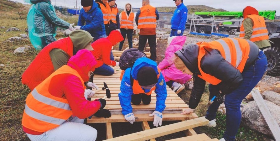 В субботу в природном парке «Териберка» смонтировали около 50 метров деревянного настила. Тропу начали вести от района водозабора.