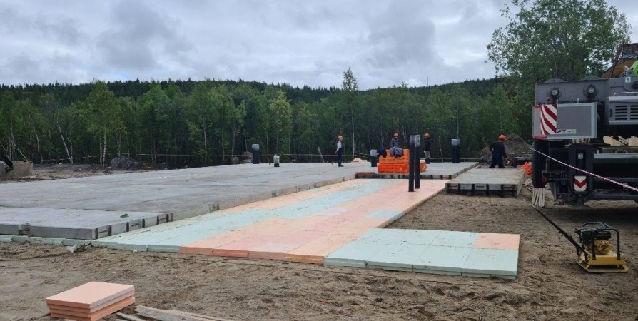 Сейчас рабочие укладывают фундаментные плиты и монтируют слои утеплителя.
