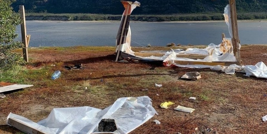 Укрывная полиэтиленовая пленка, доски, бытовой мусор - все это оставили после себя отдыхавшие возле Нижне-Териберской ГЭС туристы. Соответствующая фотография опубликована в паблике интернет-газеты «Моя Териберка».