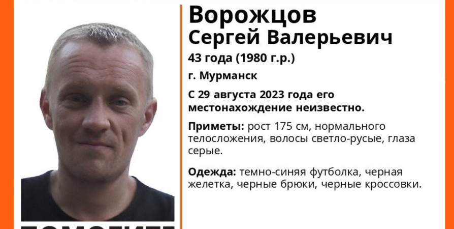 С конца августа ищут пропавшего мурманчанина Сергея Ворожцова 43 лет. Как рассказали волонтеры отряда «ЛизаАлерт» Мурманской области, с 29 числа его местонахождение не известно.