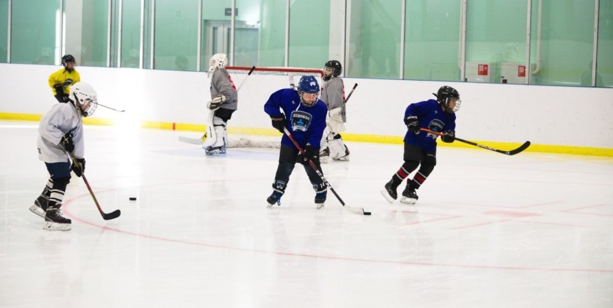 Воспитанники спортшколы №6 возобновили тренировки в мурманском «Метеоре», где юные спортсмены занимаются фигурным катанием, хоккеем с шайбой и мячом.