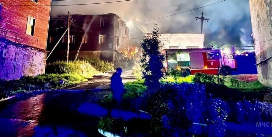 Сегодня ночью в Мурманске произошел пожар в неэксплуатируемом двухэтажном деревянном строении на улице Куйбышева, 11.