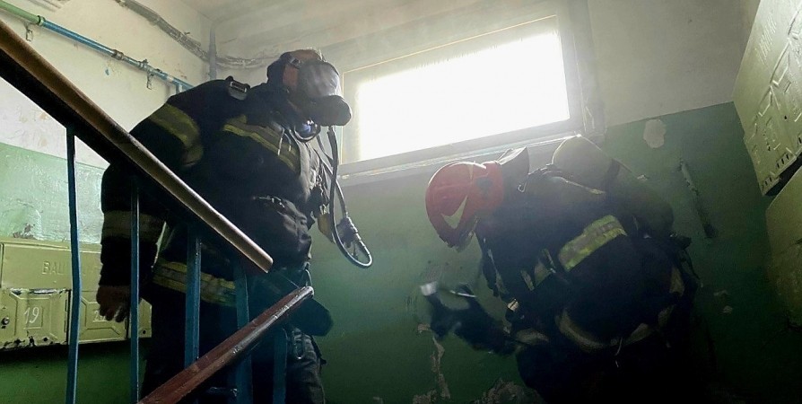 В результате пожара полностью закопчена двухкомнатная квартира, частично - подъезд. Причины происшествия устанавливают специалисты МЧС.