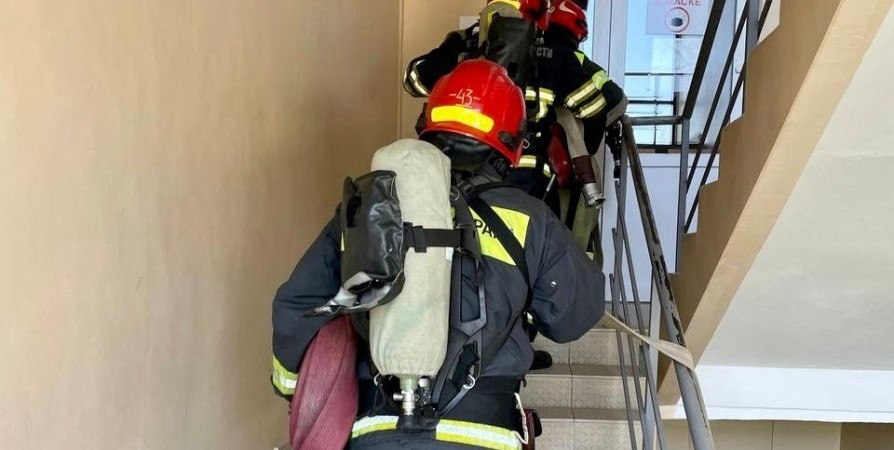 В результате на лестничной площадке между этажами обгорели деревянная дверь и конструкция из металлопрофиля и гипсокартона. Общая площадь пожара составила 2,5 кв.м.