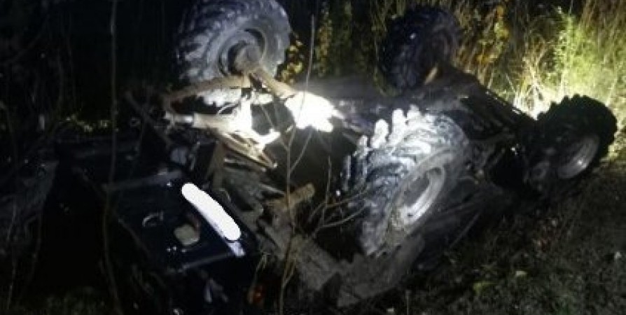 В Апатитах в районе второй фермы автомобиль УАЗ Hunter вечером 30 сентября съехал в кювет и перевернулся на крышу.