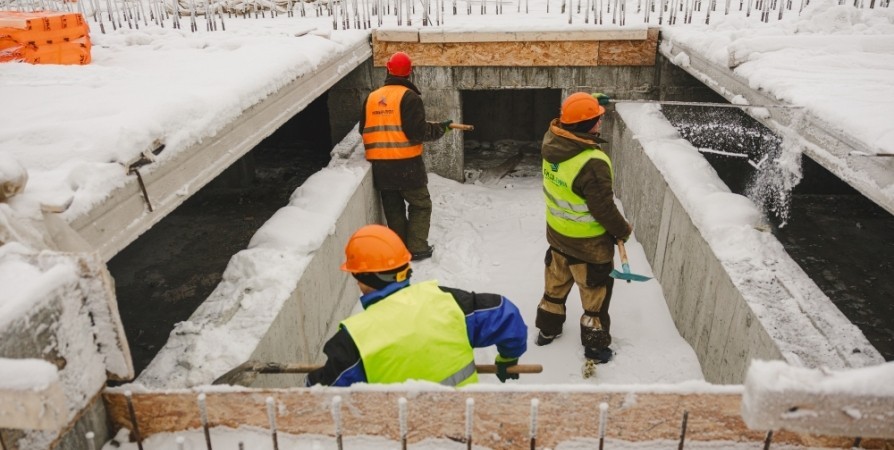 На стройплощадке жилого дома на ул. Успенского в Мурманске возводят стены первого этажа, в ближайшее время подрядчик приступит к прокладке тепловой сети и устройство наружных внутриплощадочных сетей водопровода и канализации, сообщили в администрации Мурманска.