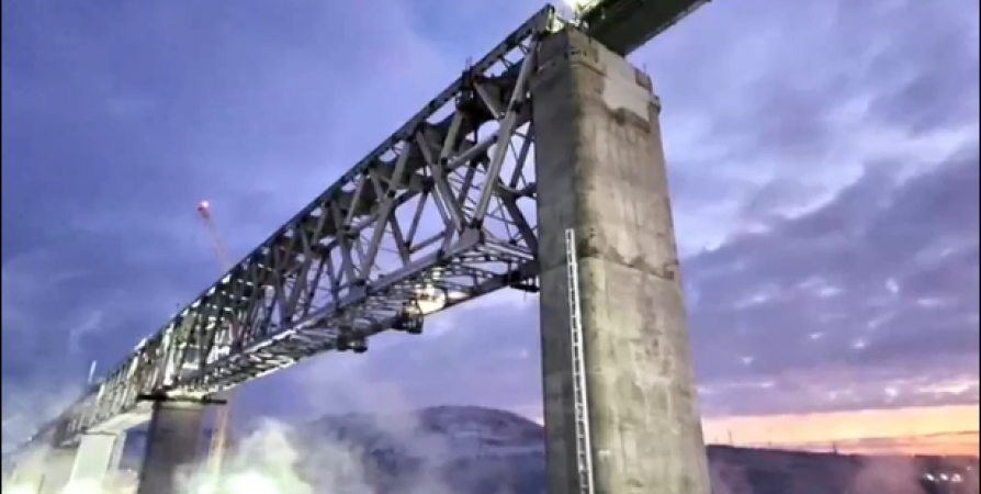 На самом крупном в Заполярье железнодорожном мосту через реку Тулома установлены все пролетные строения, сообщает ФКУ «Ространсмодернизация».