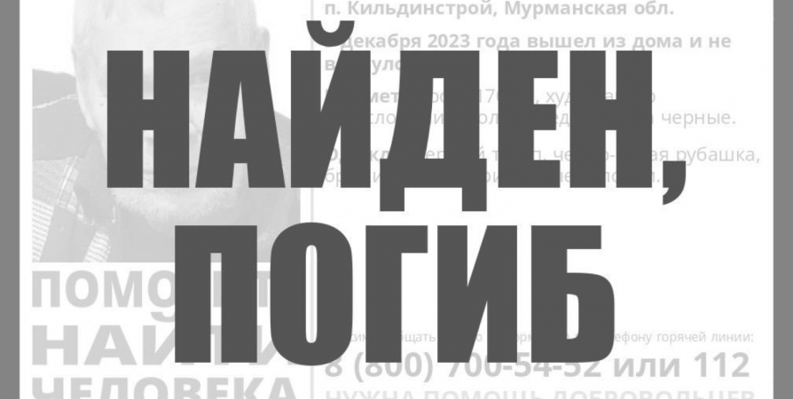 Ранее Nord-News сообщало, что вечером 5 декабря была опубликована ориентировка на 86-летнего Назаренко Виктора Даниловича из Кильдинстроя.