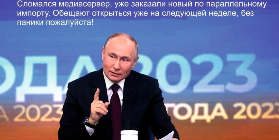 – Успокойтесь! Никакой «Пятерочки» там не будет! Сломался медиасервер, уже заказали новый по параллельному импорту. Обещают открыться уже на следующей неделе, без паники, пожалуйста! – шутливо объясняется в картинке.