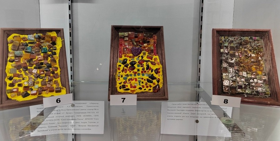 Выставка с необычными работами из янтаря, созданными в рамках инклюзивного конкурса «Я люблю Россию» открылась в филиале № 24 Центральной библиотеки Мурманска (ул. Шабалина, 59).