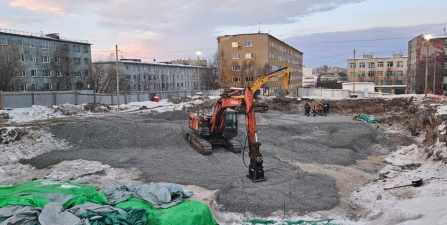 - Сейчас подрядчик ведёт буровзрывные работы под траншеи наружных сетей, вывозит грунт с площадки, готовит котлован под устройство основания плиты фундамента, – рассказал и.о.министра строительства Мурманской области Алексей Грачиков.