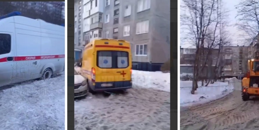 Кареты «скорой помощи» буксуют во дворах Заполярья из за снежной каши и льда. Сообщения об этом и видео северяне оставляют в соцсетях.
